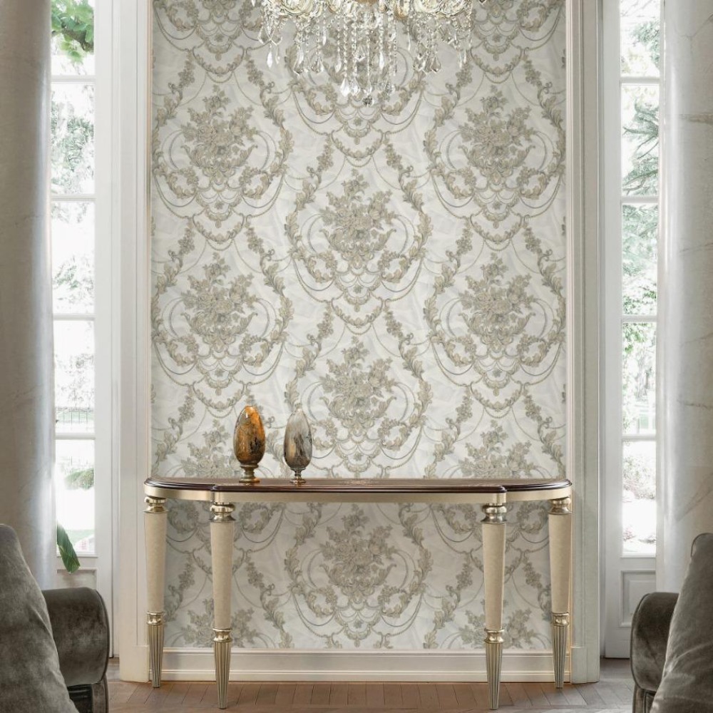 Perla II White & Beige Oriental Luxury Damask Vinyl Wallpaper 9084