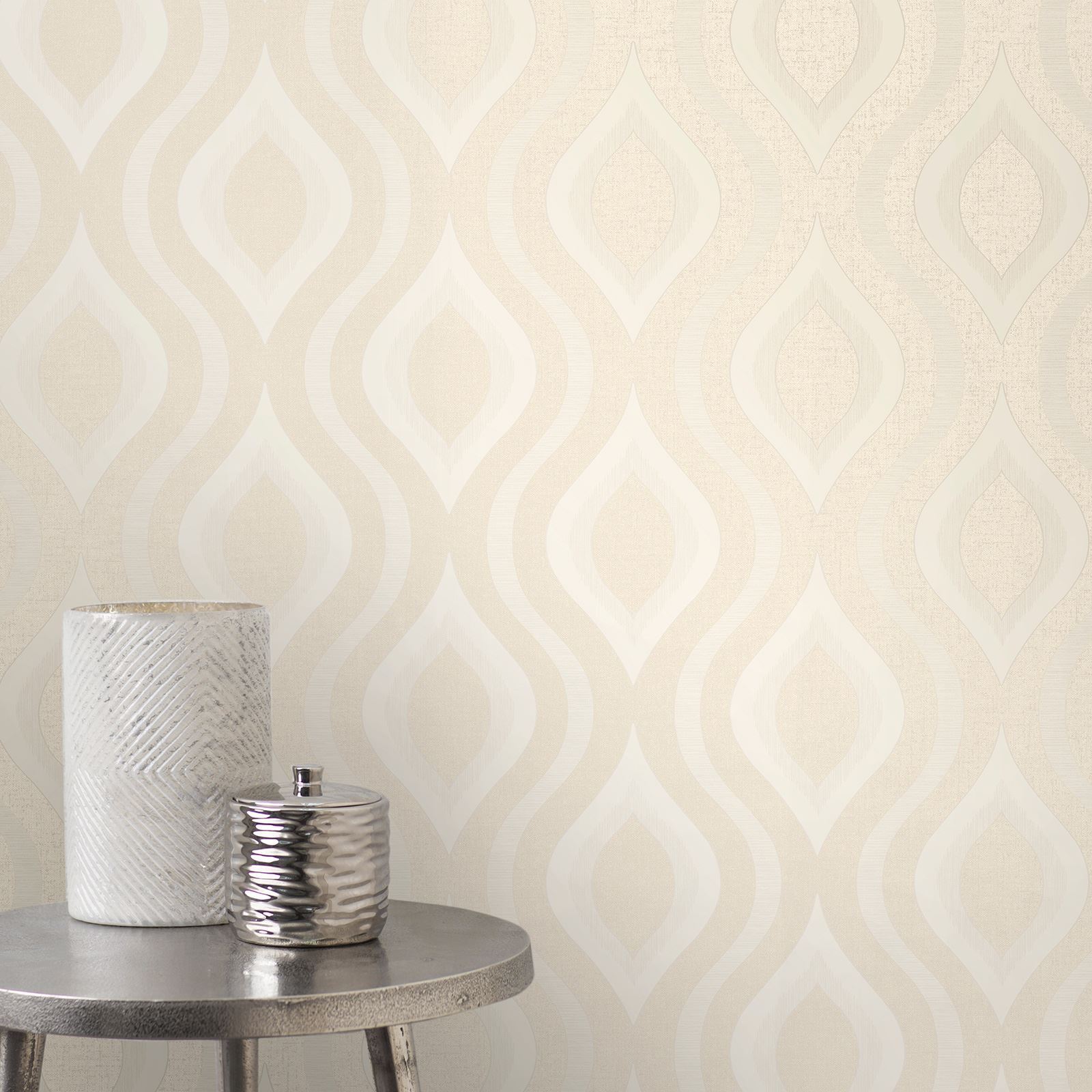 Calculate QuantityA retro-inspired wallpaper gets a stylish update with this Quartz Geometric Wallpaper. The pattern is a classic curving geometric shape that has been modernised with contrasting finishes in textured pale cream with gold glitter and smooth metallic soft gold. This premium vinyl wallpaper would look fantastic when used with a complementary paper from the Fine Decor Quartz Collection to create a feature wall or to decorate an entire room.