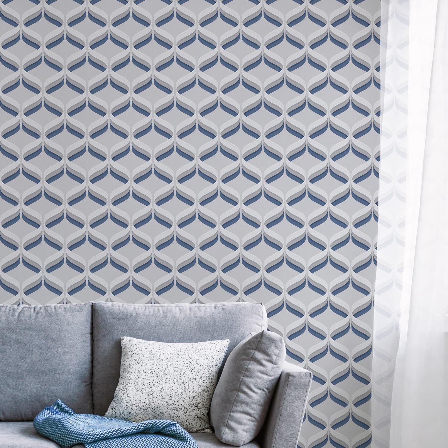 Retro Ogee Blue Fresco Wallpaper 107744