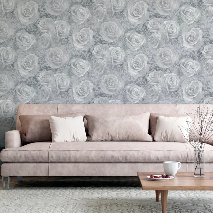 Calculate QuantityFeaturing vintage-look roses on a damask background, this is a wallpaper with an opulent and romantic feel. The pale silver colour will create a cool, calming atmosphere, while the lustrous, pearlescent background will reflect the light back into your room. This paper is an ideal choice for a sophisticated bedroom, guest room or lounge. Great on a feature wall or chimney breast, or on all walls for impactful style. Suitable for most rooms except high moisture environments, like bathrooms.