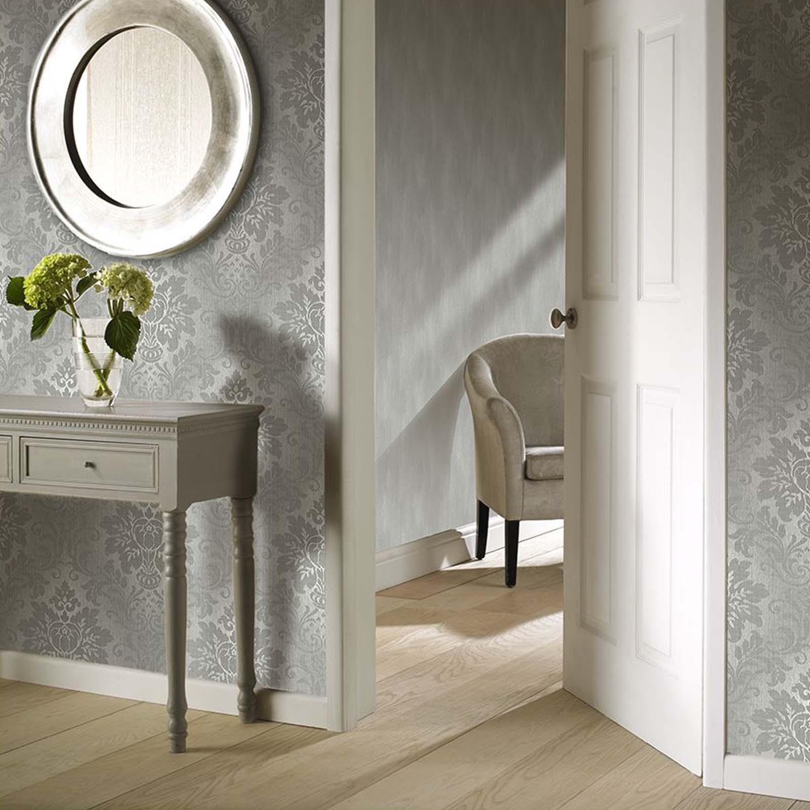 Royal Fabric Damask Silver Wallpaper A10904