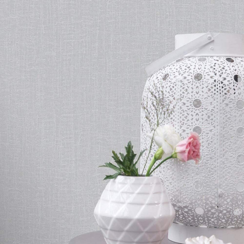 This beautiful Sassari Silver Textured Wallpaper features a slick vintage theme. Heavyweight textured vinyl wallpaper Perfect for feature walls and entire rooms, the design features a subtle classic pattern with soft metallic embellishments for added depth.