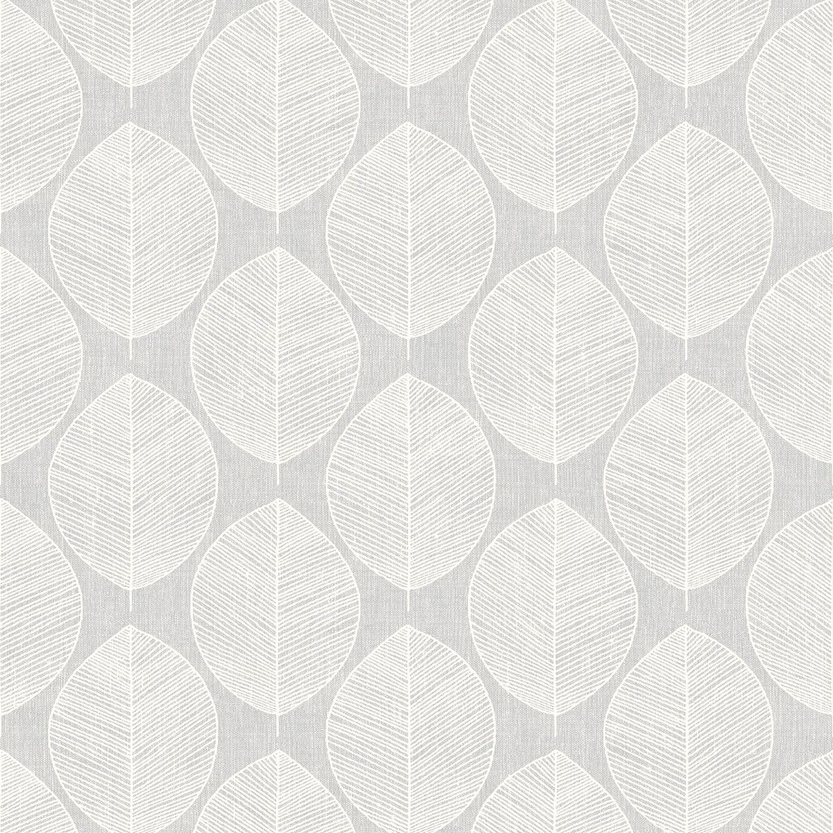 On this Scandi inspired wallpaper, white sketched leaves create a beautiful geometric pattern with a subtle retro feel. The soft grey background is perfect to brighten up any room of the house!
