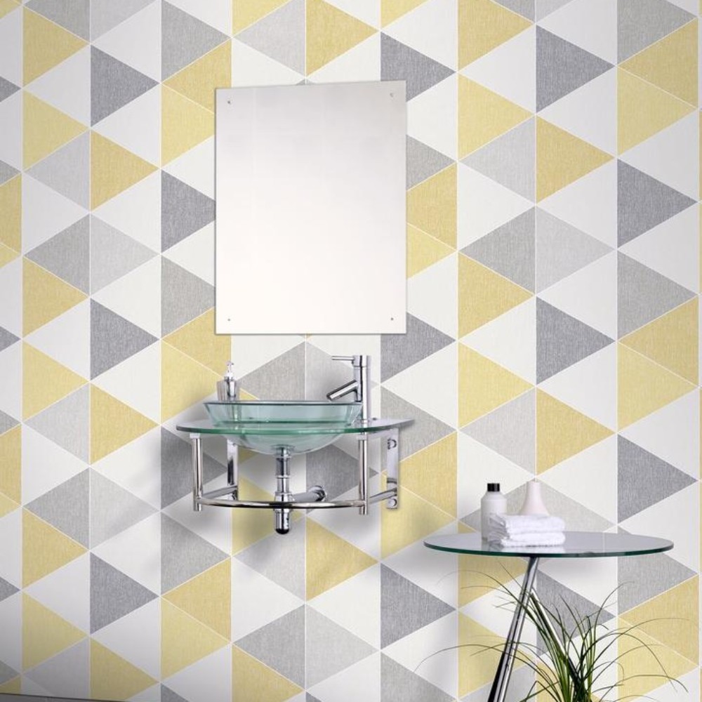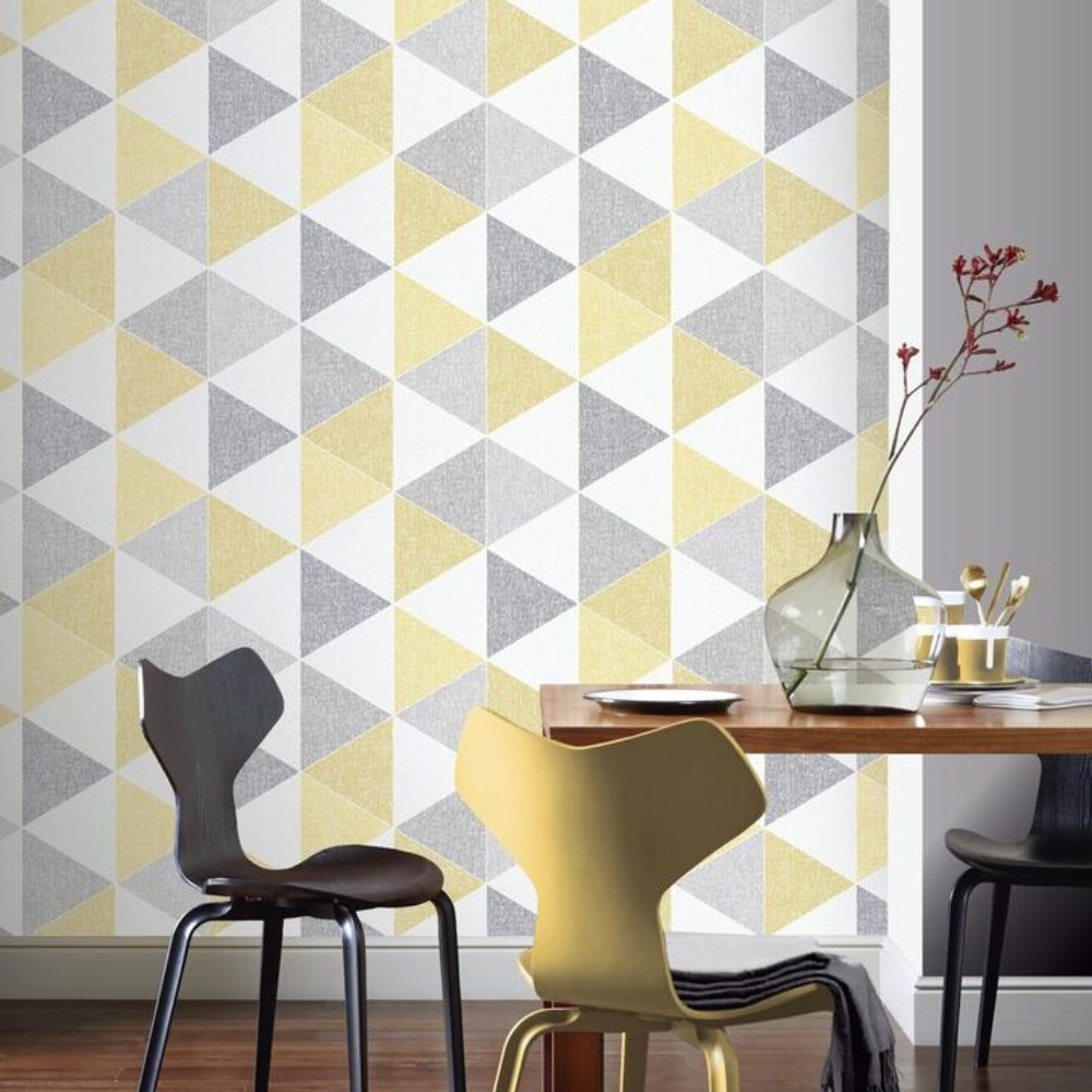 Calculate QuantityThis striking graphic triangle print wallpaper comes in on-trend yellow and grey. It's a cool, Scandi-inspired design for a sophisticated home. Its colour palette ensures that it's a key fashion choice, you can team this paper with pale or dark furniture to suit your style. A great feature wall choice, it's also understated enough to be used throughout a room, whether you hang it in a bedroom, living room, dining room or kitchen. Suitable for most rooms except high moisture environments, like bathrooms.
