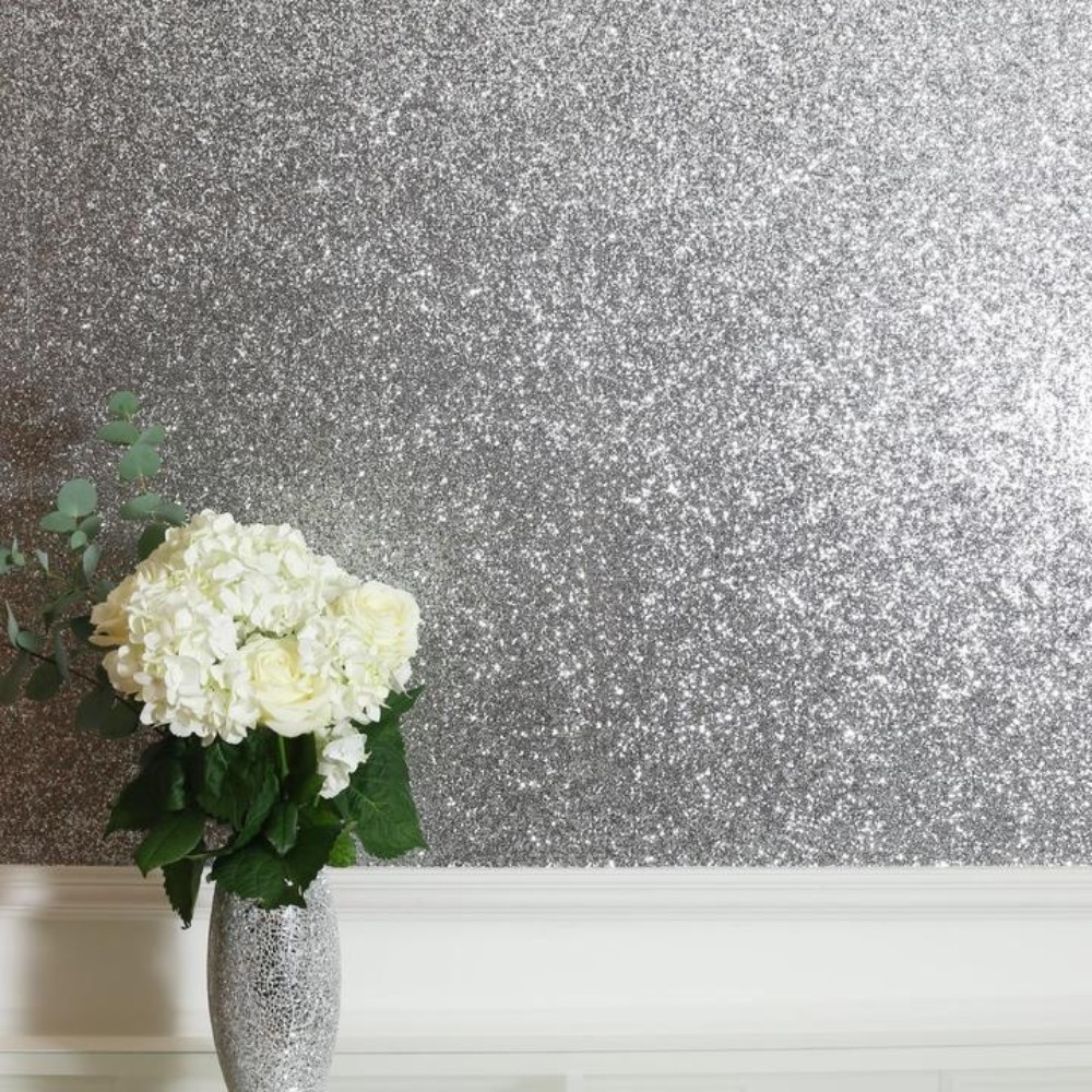 Calculate QuantitySparkly and shimmering, this sequin finish wallpaper in silver will bring maximum glitz to any space. Team it with painted walls, a striking patterned paper or even throughout a room for a fabulous effect. It really is a paper designed to turn heads. With a textured metallic finish, light bounces off in every direction, for glamour by day and by night. Hang it in a kid's bedroom, walk in wardrobe, cloakroom or feature wall for instant luxury. Suitable for most rooms except high moisture environments. The size of this roll is 6m. x 0.53m.