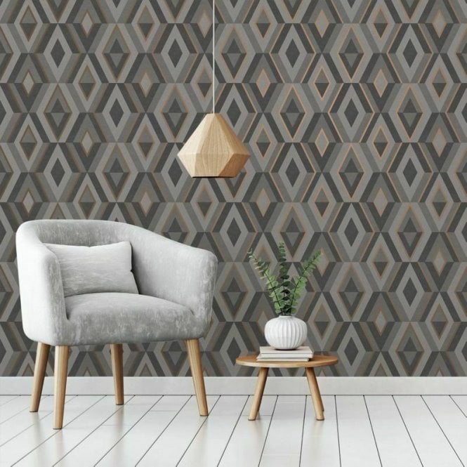 Calculate QuantityShard Geo is a captivating contemporary design that features a faux 3-dimensional effect. Combining tonal shades of grey and metallic rose gold highlights this wallpaper creates the illusion of depth and the geometric pattern will make a great statement for any modern-day interior. Hang this wallpaper using the traditional paste the paper application method. Please purchase a sample for true texture.