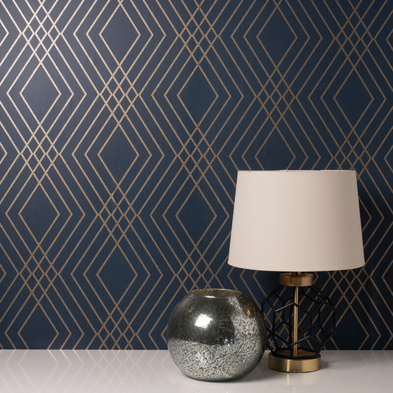 Calculate QuantitySimple but oh-so elegant, Shard Trellis is comprised of a light capturing lustrous gold set over a textured matt blue backdrop. The overlapping distressed metallic lines form echoes of stylish geometric diamonds. This high-quality wallpaper can be used to create a stimulating feature wall or is equally as good across an entire room. Hang this wallpaper using the traditional paste the paper application method.