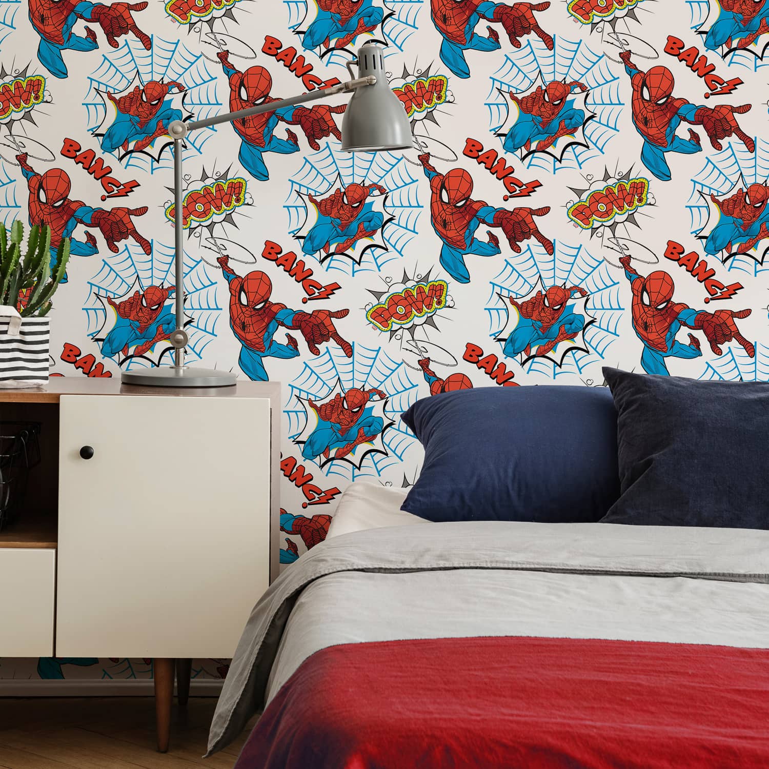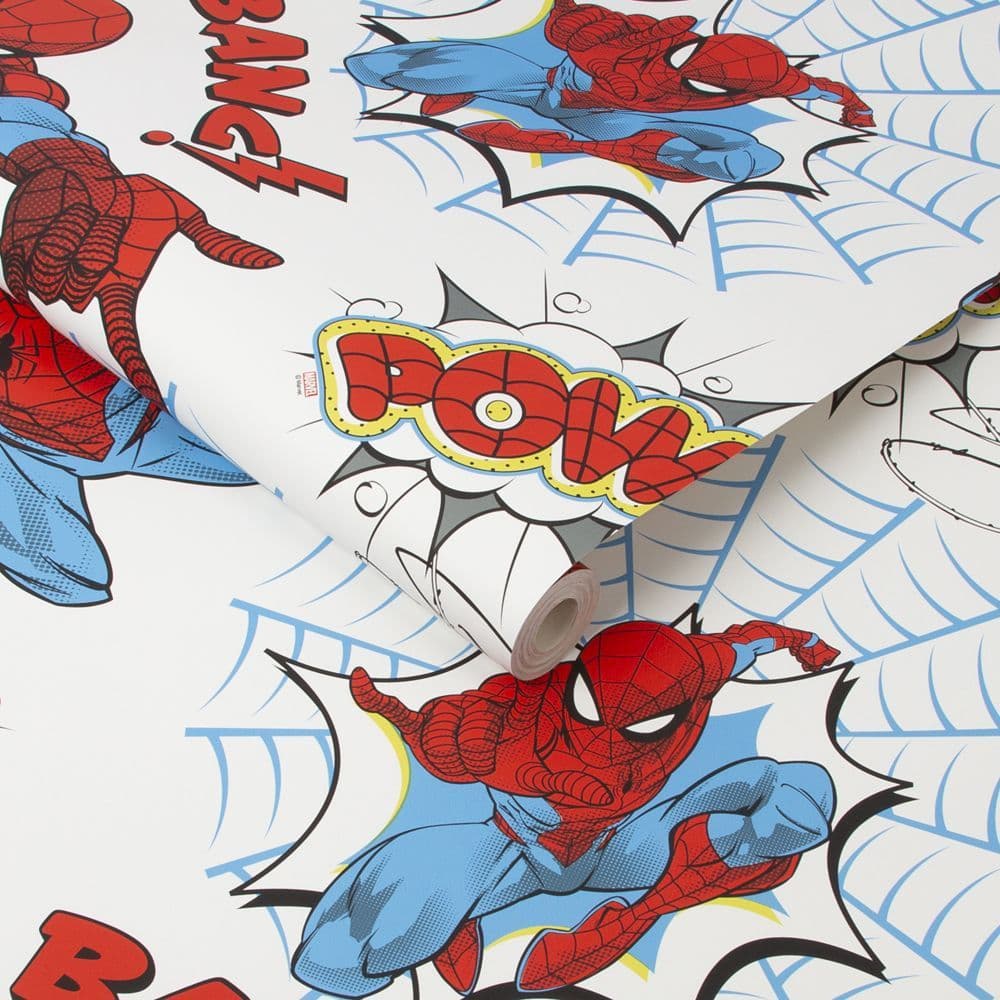 Calculate QuantityJoin a true hero on one of his adventures with this lively comic book-inspired Spider-Man wallpaper design. This design shows Spider-Man mid flight using his web slinging abilities and showing off its 'POW!' sound effect. This active, fun wallpaper is perfect for a children's bedroom or play areas