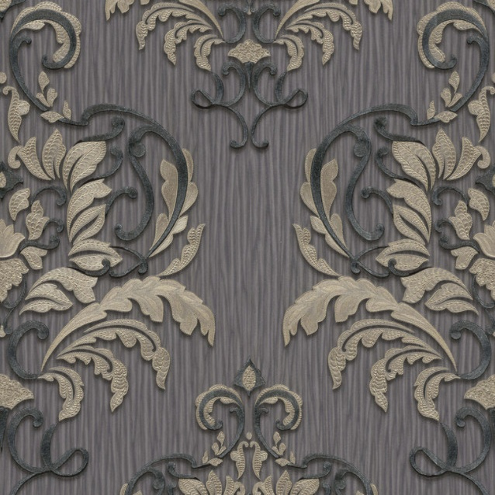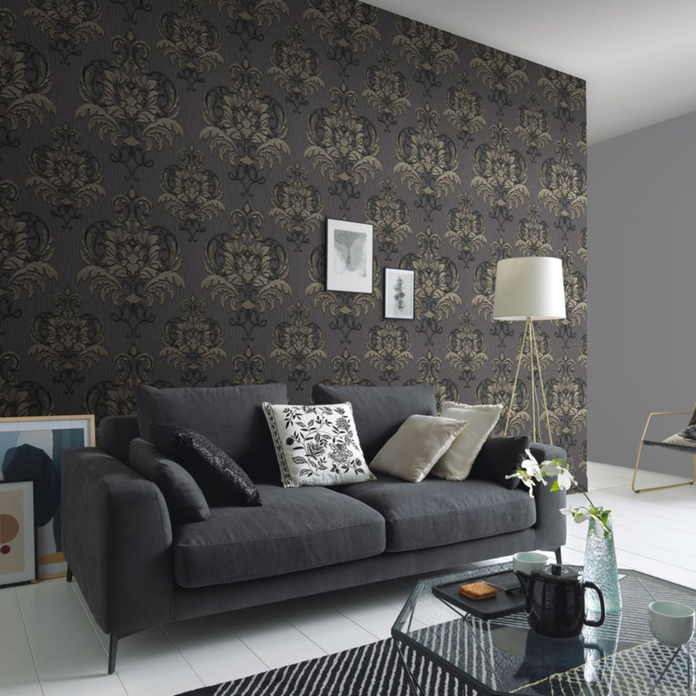 Spotlight Damask Black & Gold Vinyl Wallpaper 10102-34