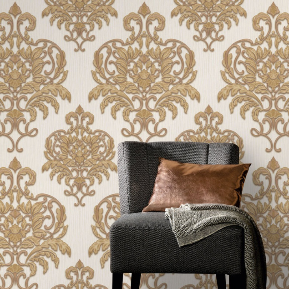 Spotlight Damask Cream & Gold Vinyl Wallpaper 10102-30