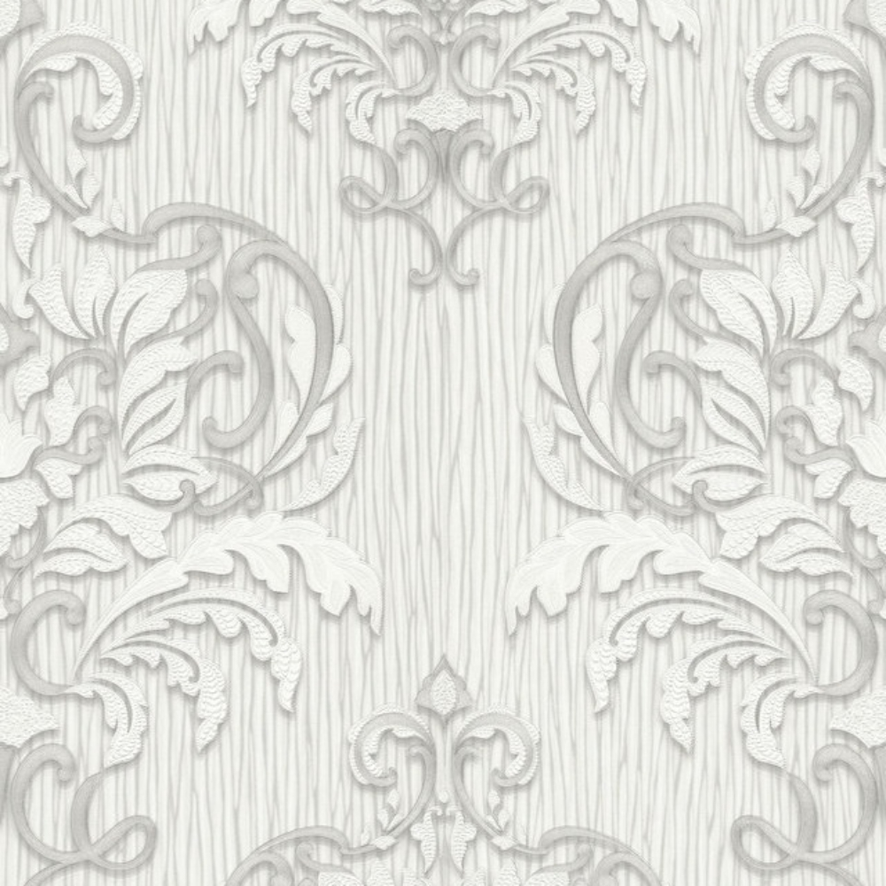 Spotlight Damask White & Grey Vinyl Wallpaper 10102-31