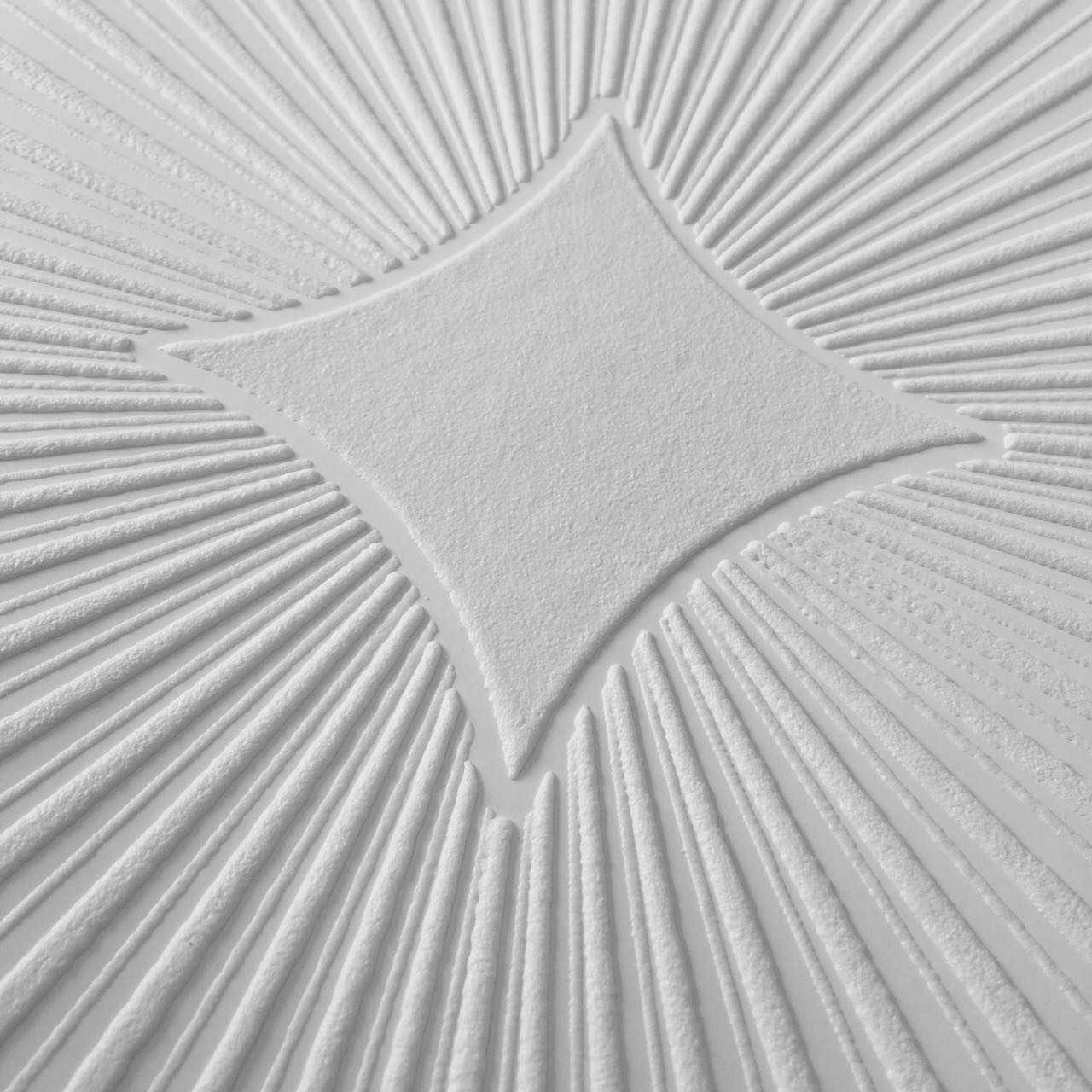 A white geo effect textured wallcovering with a pattern match. Suitable for painting with a colour of your choice. Please purchase a sample for true texture.