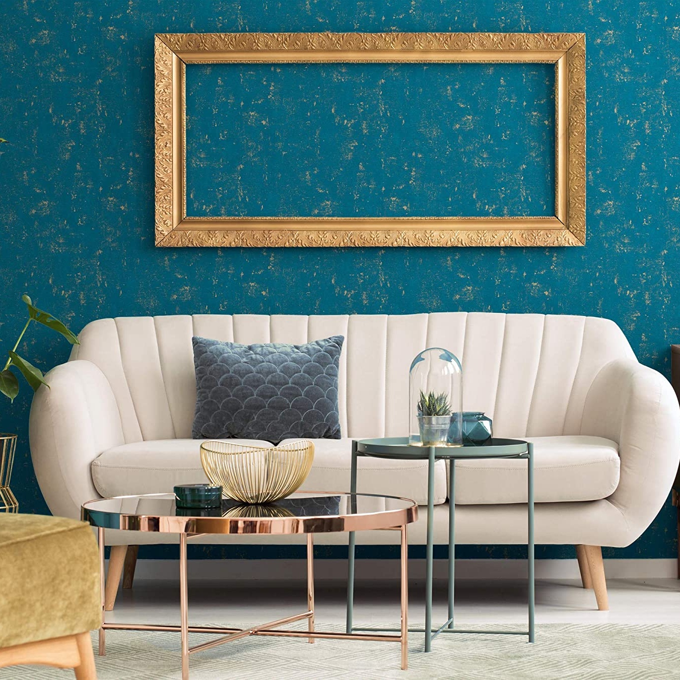 Stone Concrete Teal & Metallic Gold Industrial Wallpaper 2307-68