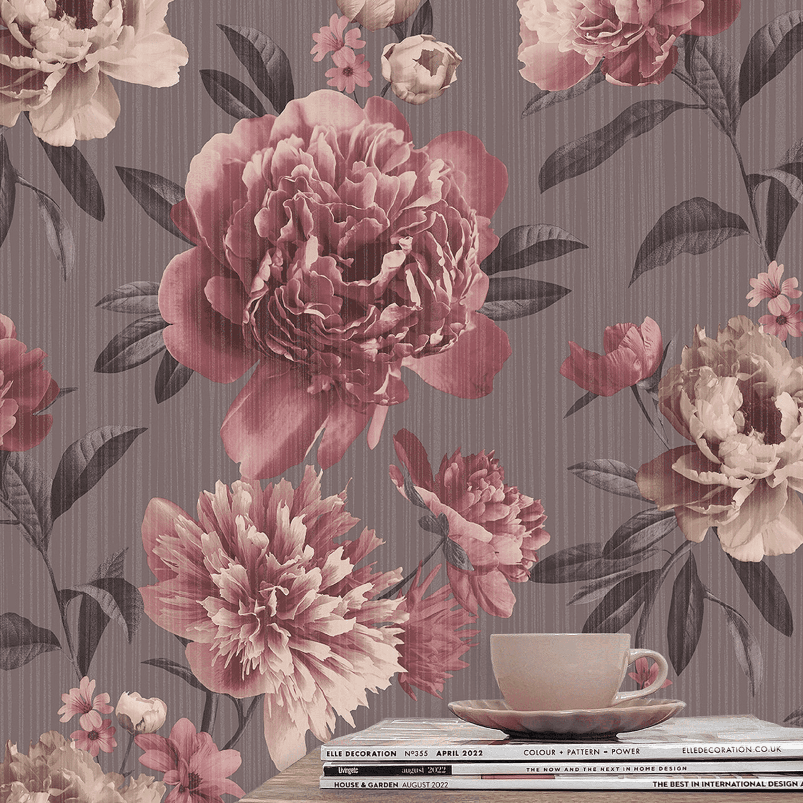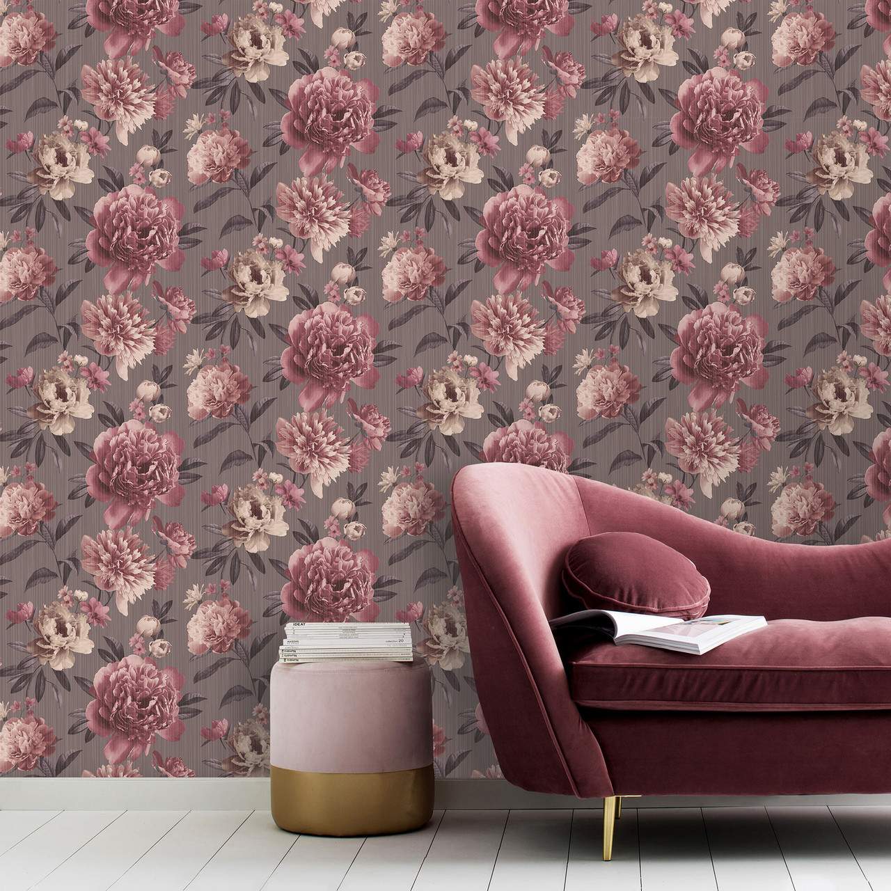 Valentina Big Bloom Mauve Floral Luxury Vinyl Wallpaper 526851