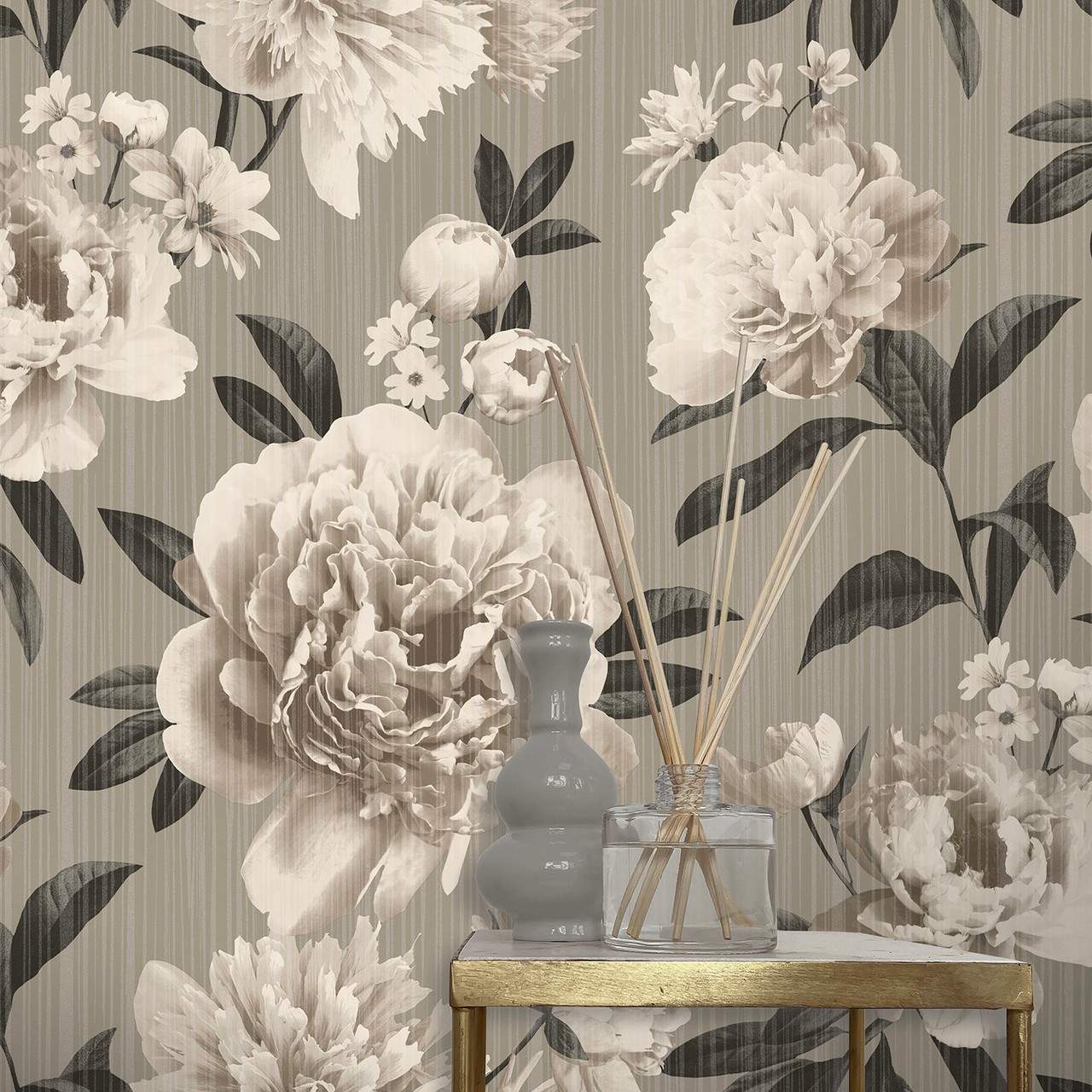 Valentina Big Bloom Monotone Floral Luxury Vinyl Wallpaper 526875