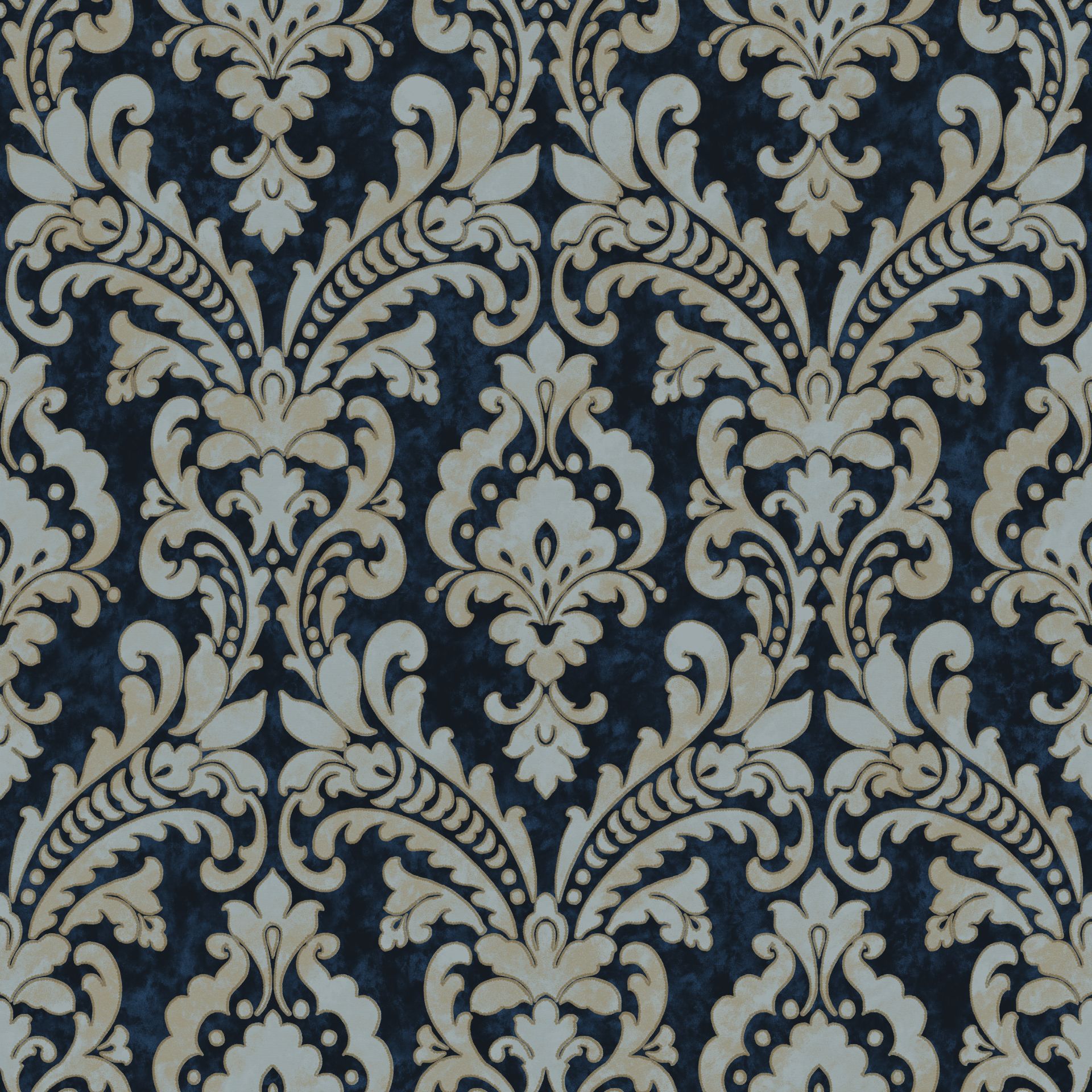 Verde Damask Navy Blue Vinyl Wallpaper VD219175