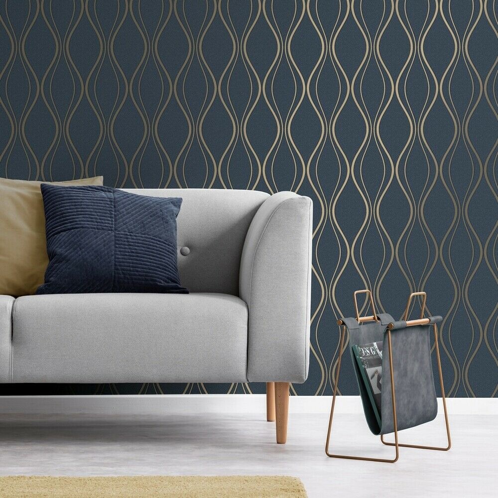 Vymura Platinum Wave Navy Foil Vinyl Wallpaper FD42801