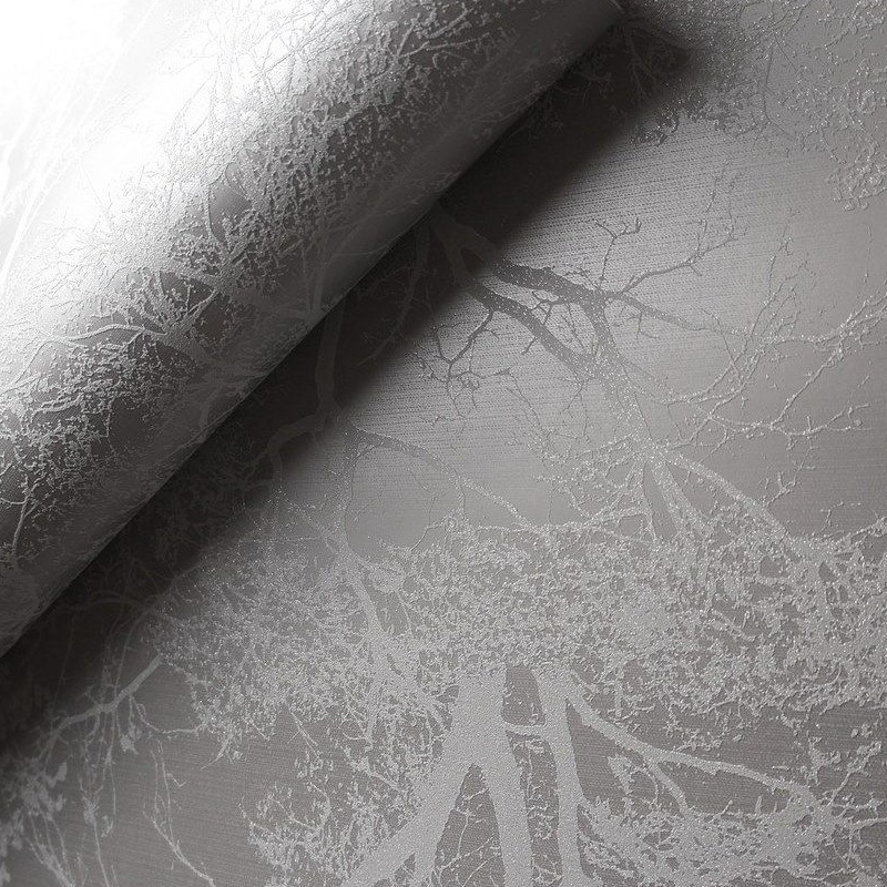 This natural tree print creates an all over textured look, with a raised motif and a shimmering mica textile print in the background.